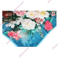 Magnifique foulard bleu ”tableau de fleurs romantiques”, carré de soie vintage chic et luxueux. Ce riche bouquet majestueux et luxuriant composé de pivoines, de lys et autres petites fleurs… est un accessoire de mode raffiné qui pourra vous accompagner lors d’une cérémonie, noué autour de votre cou ou sur une coiffure type ”queue de cheval basse”. Il pourra également mettre en valeur votre sac à main s’il est attaché à l’une de ses anses.